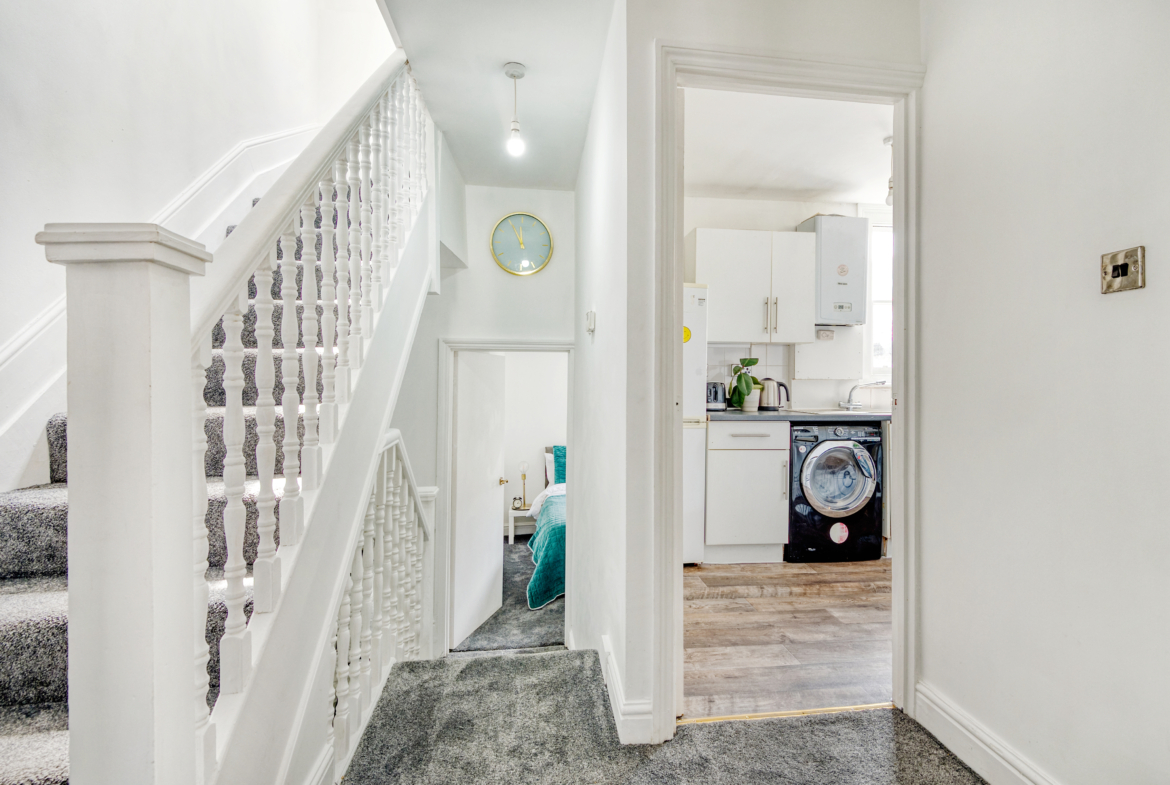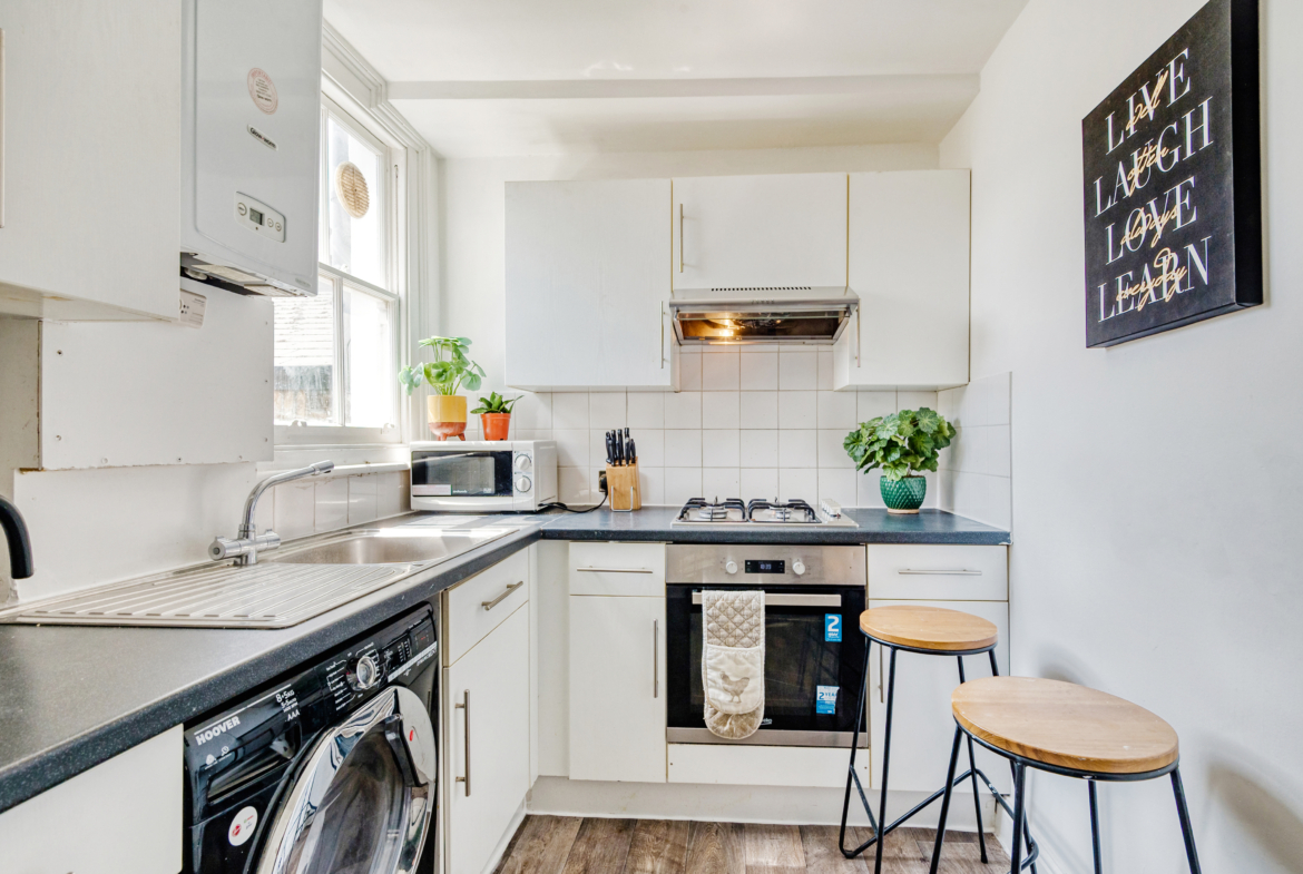 Located on the first floor of a 2 flats building in Glenrosa Street, Fulham (SW6 2QZ), this well-distributed flat offers three comfortable bedrooms, a bright living room, a fully equipped kitchen, and a full bathroom.