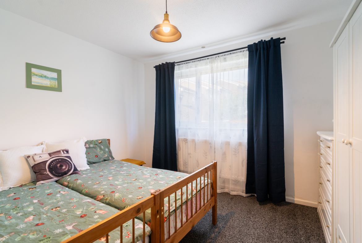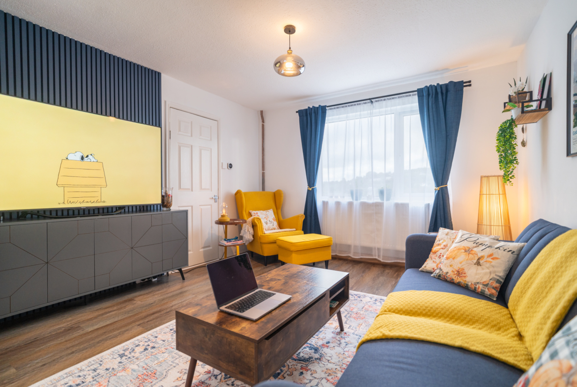 The house offers 86 square metres (approx. 925 sq ft) of internal space. It is bright, with a south-facing living room, main bathroom, and one bedroom.
