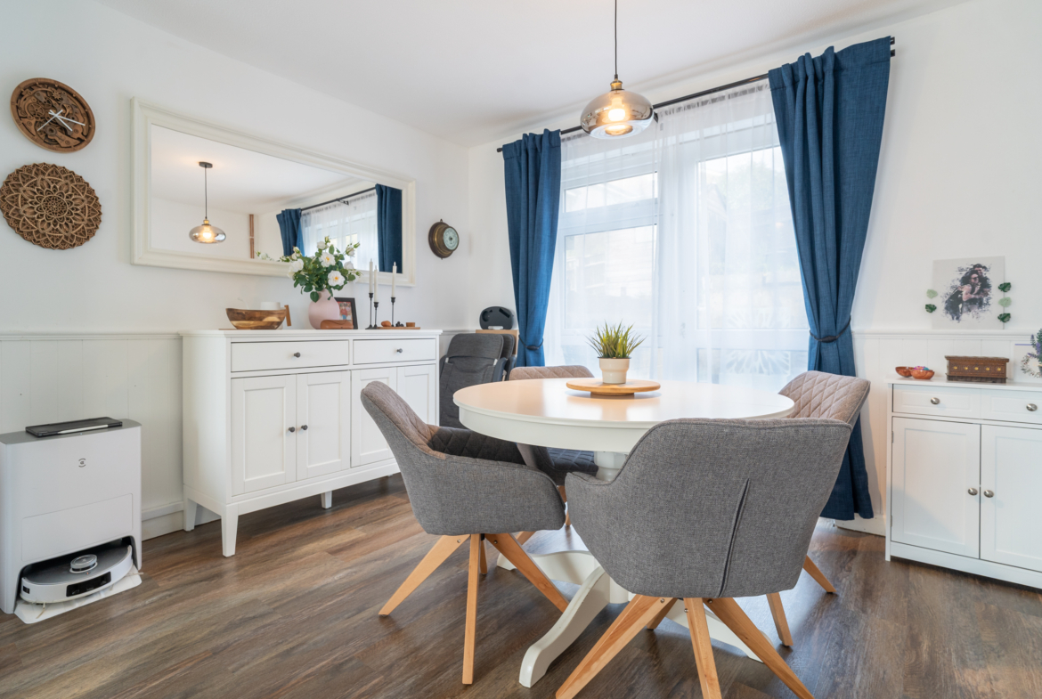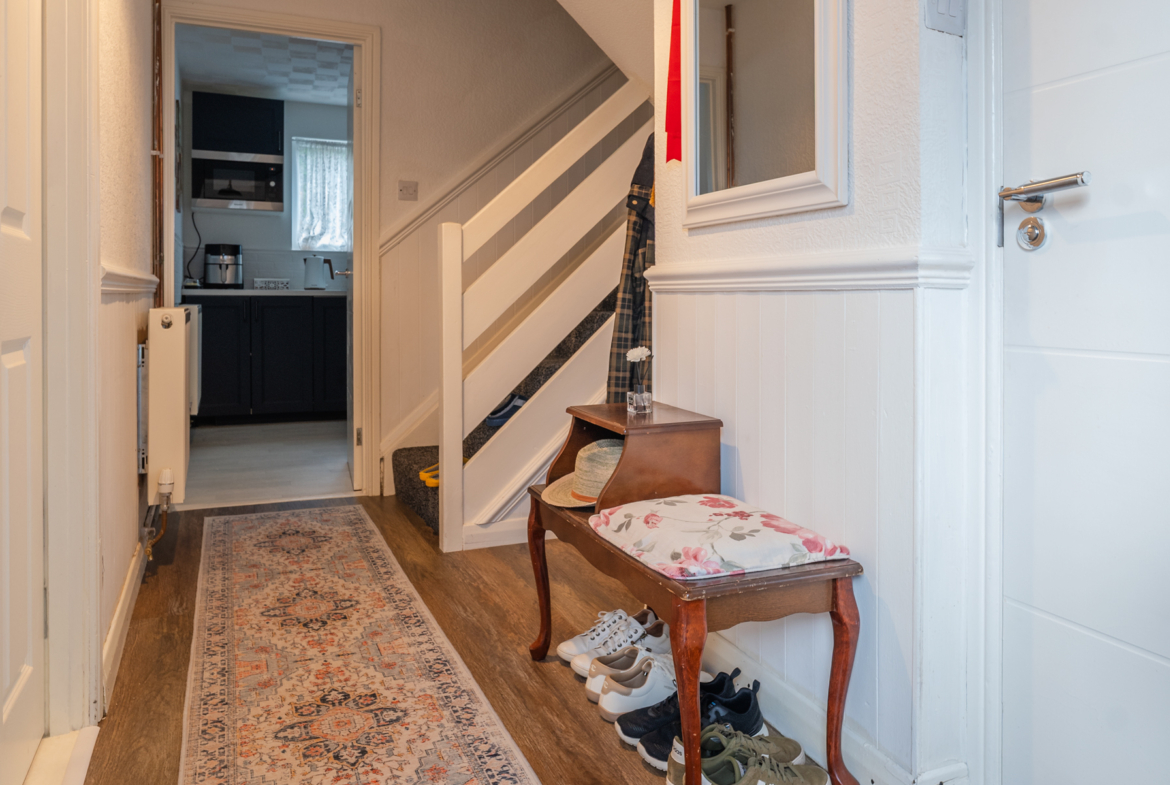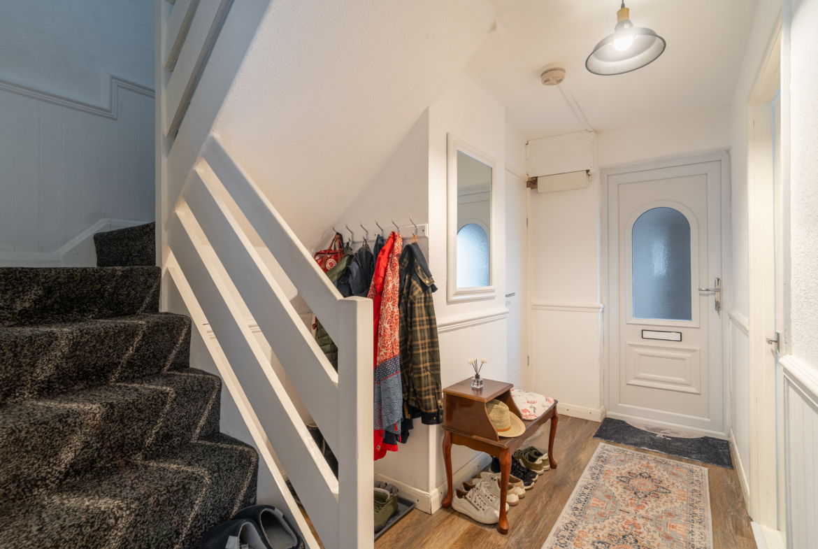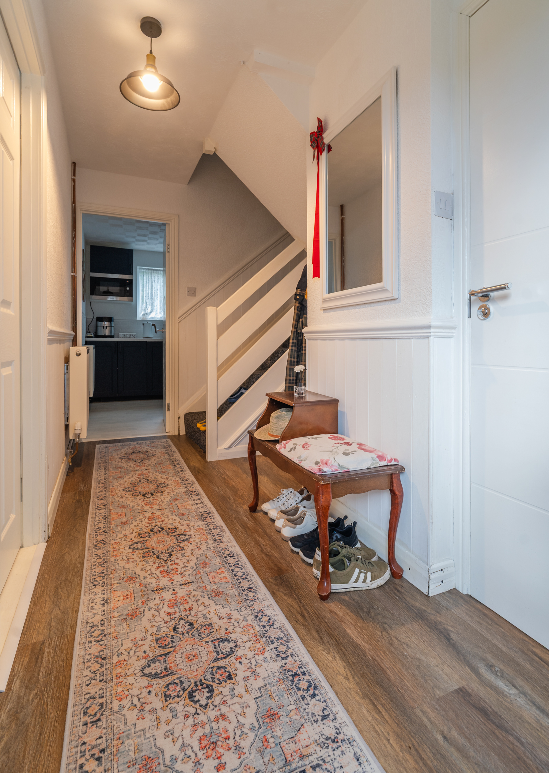 • Ground Floor: Entrance porch, open-plan living/dining room, separate kitchen. There is also a ground-floor WC which includes the washing machine and dryer.