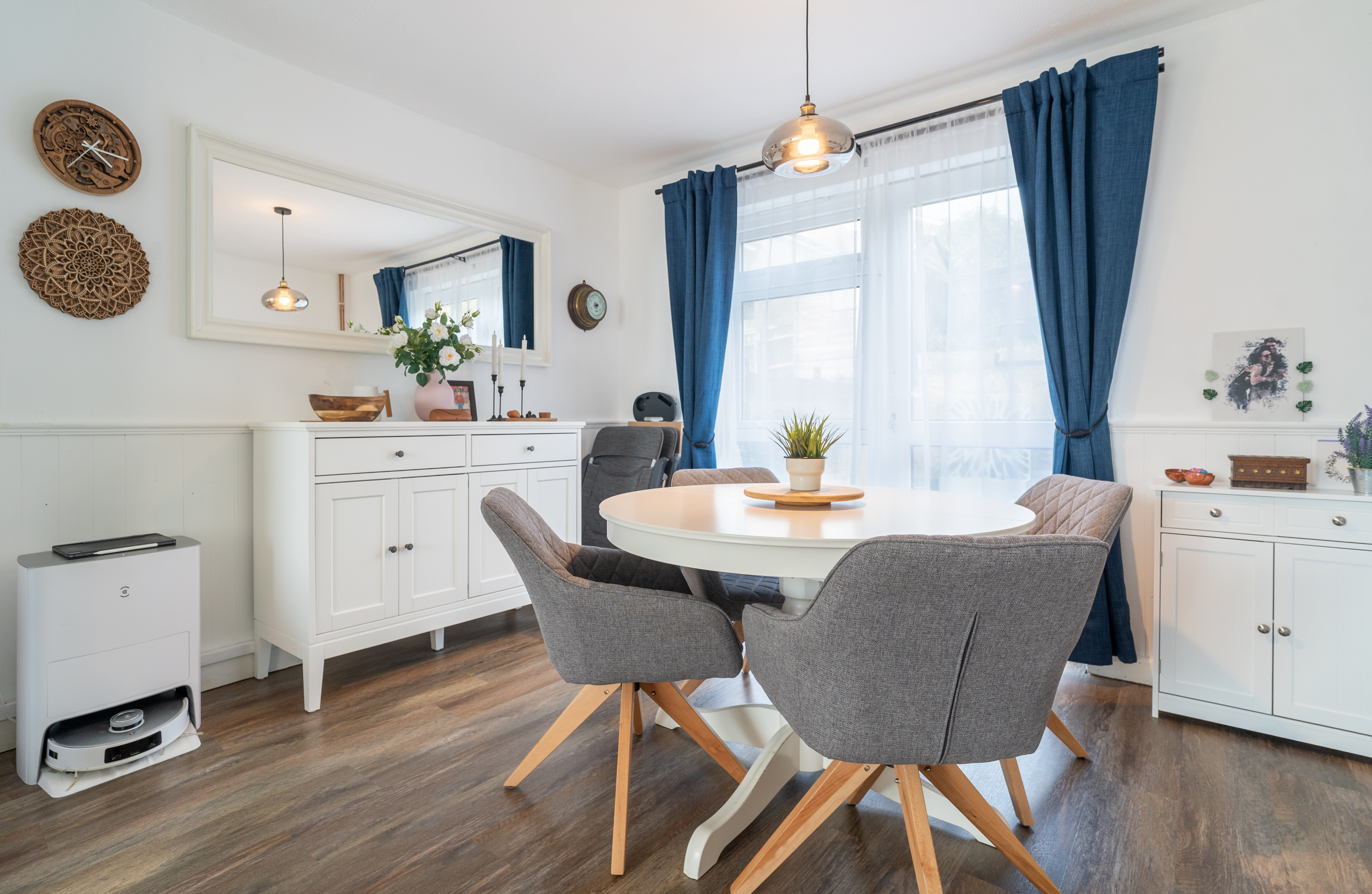 • A new air-source heat pump (installation finished late 2024) provides all heating and hot water.