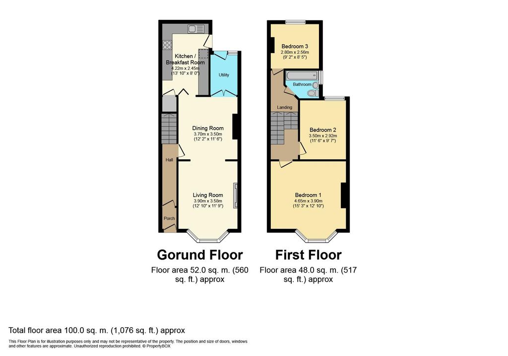 Generous three-bedroom terraced residence with approximately 1,001 ft² of well-proportioned living space