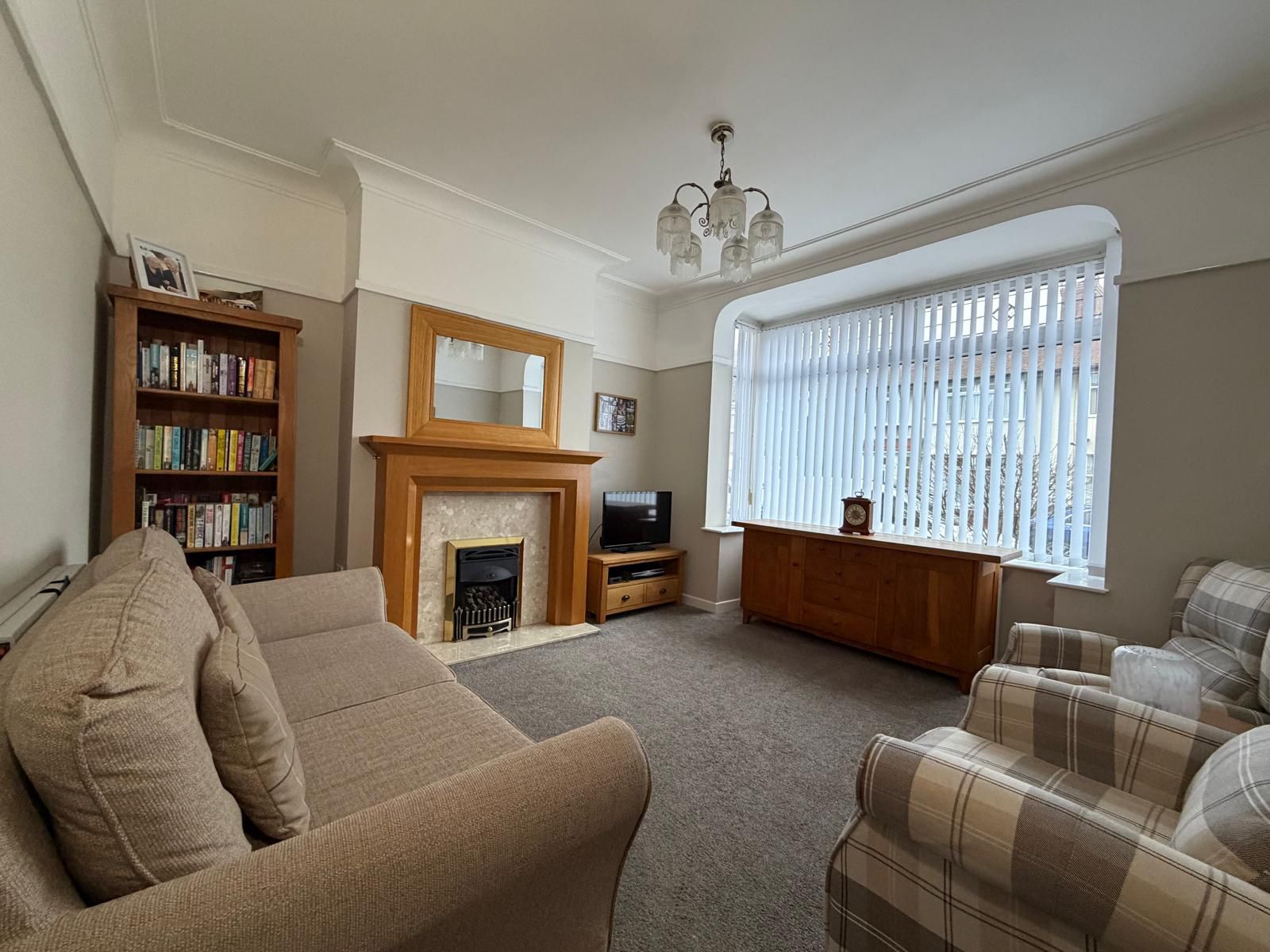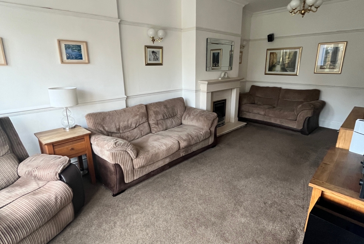 Reception Room – 4.03 x 3.78 (13.’4” x 12’5”) – illuminated timber fire surround, Radiator, large upvc bay window to front aspect.