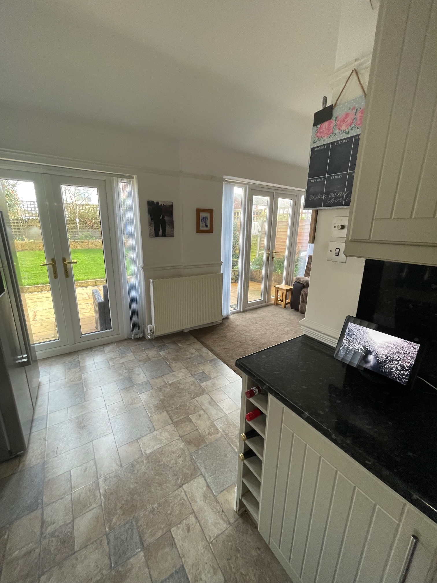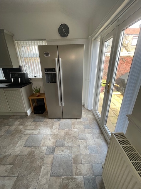 Kitchen – 5.17 x 2.19 (17’0” x 7’3”) – Kitchen comprises of various wall and base units, stainless steel sink, new oven, hob and extractor fan, dishwasher, large american style fridge freezer, upvc windows and french doors to rear aspect.