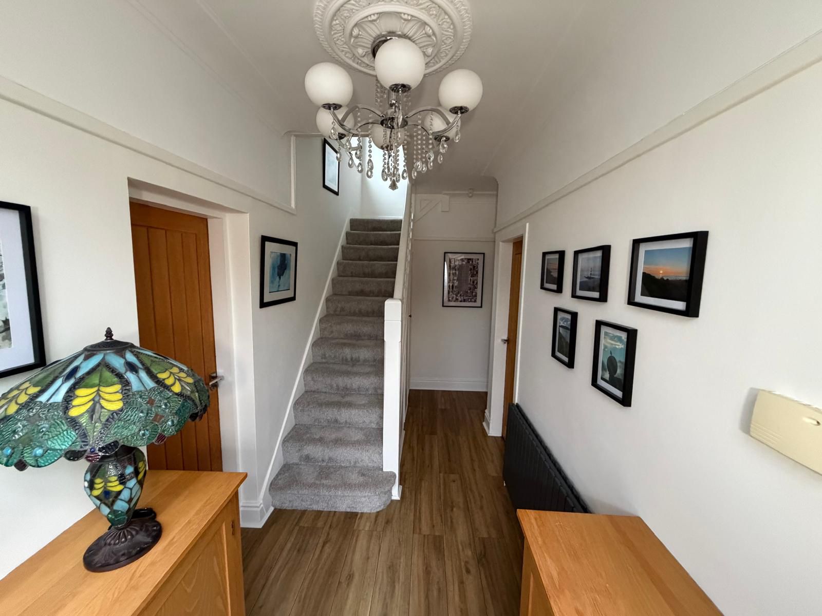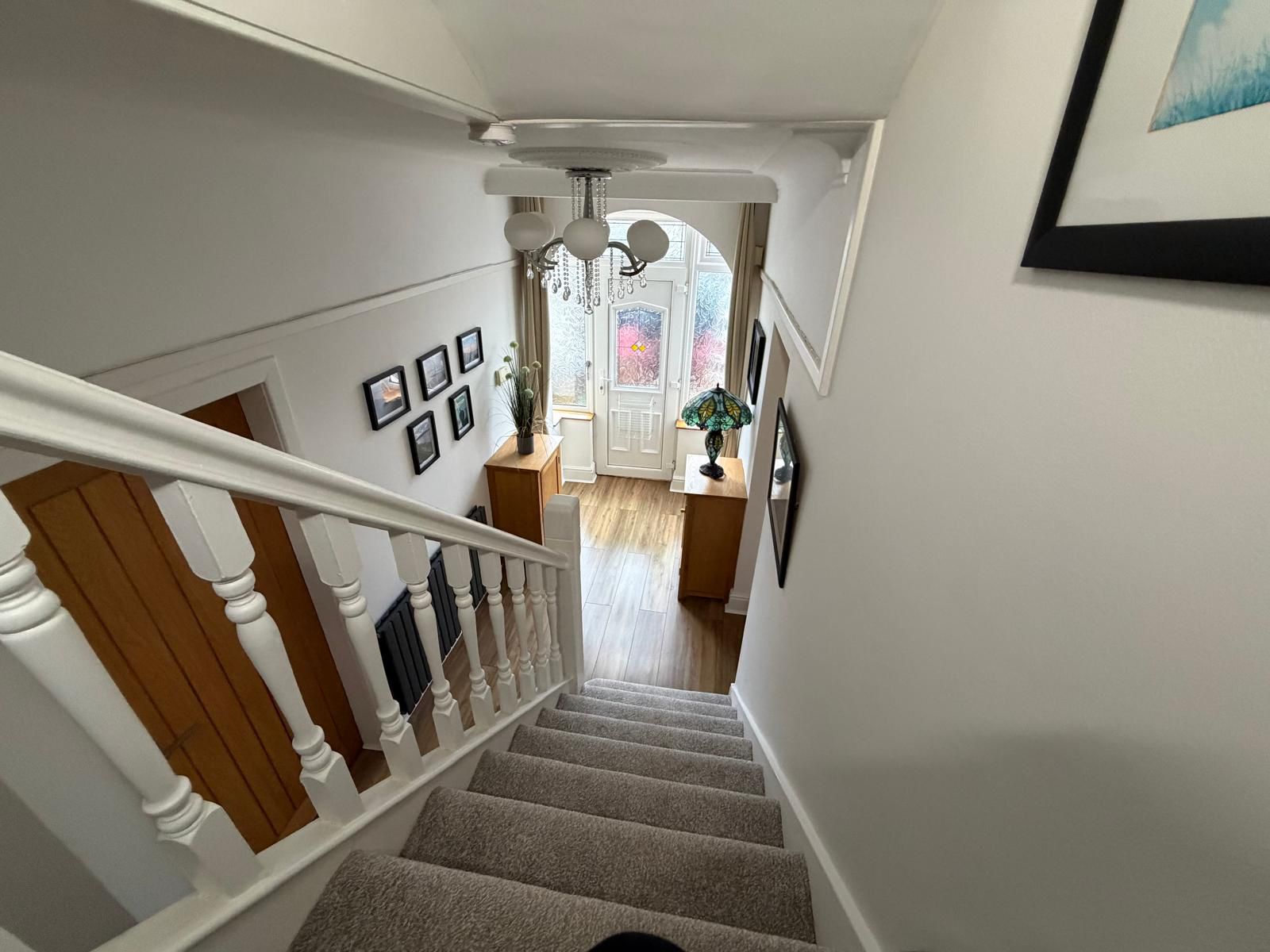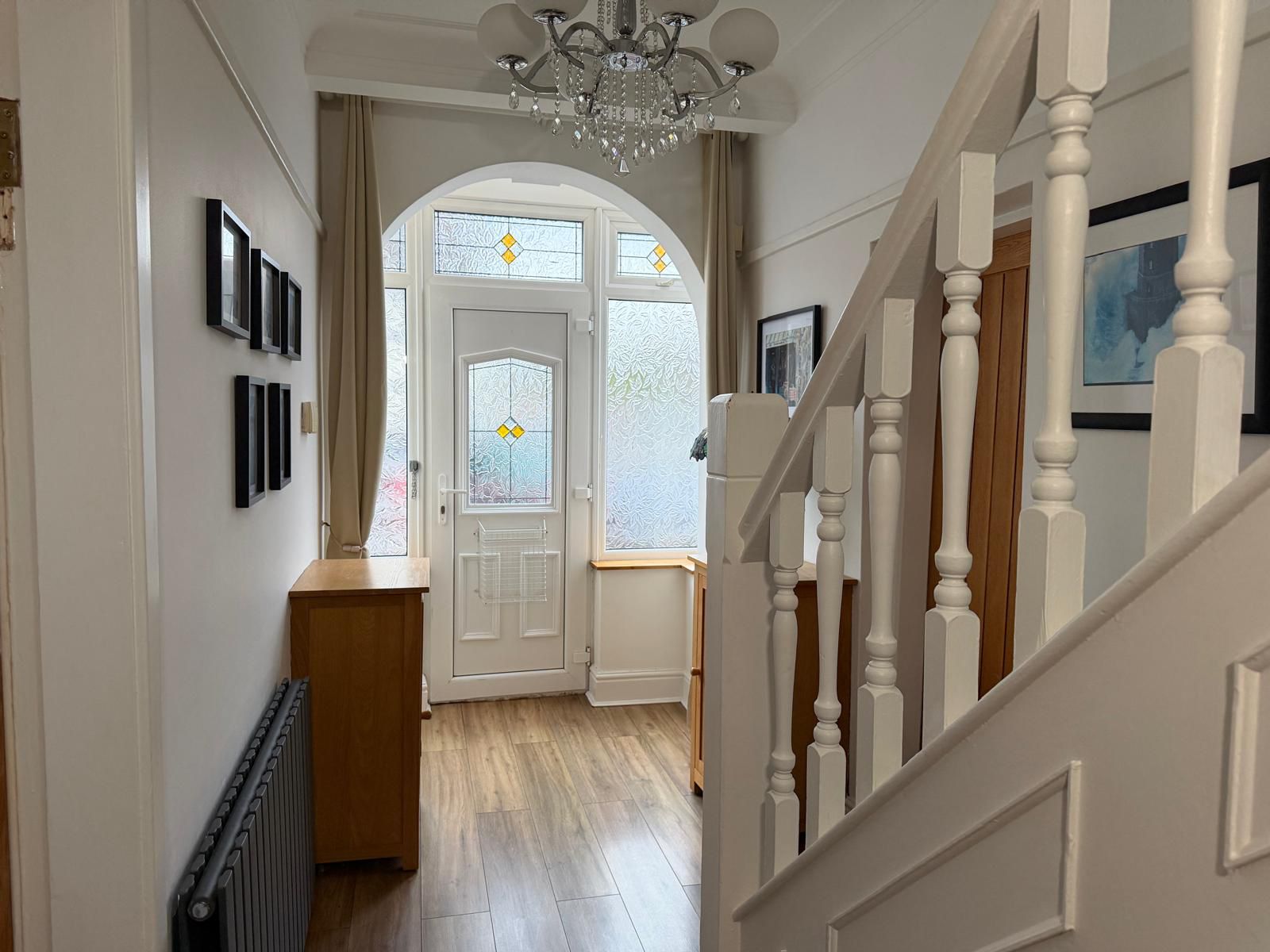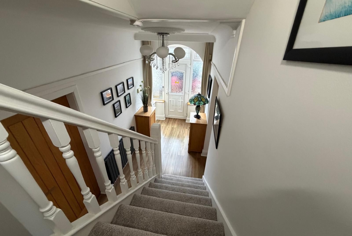 Entrance Hall – 5.11 x 1.77 (16’9” x 5’10”) – Meter cupboards, Radiator, under stair cloak/shoe cupboard, upvc porch and door to front aspect.
