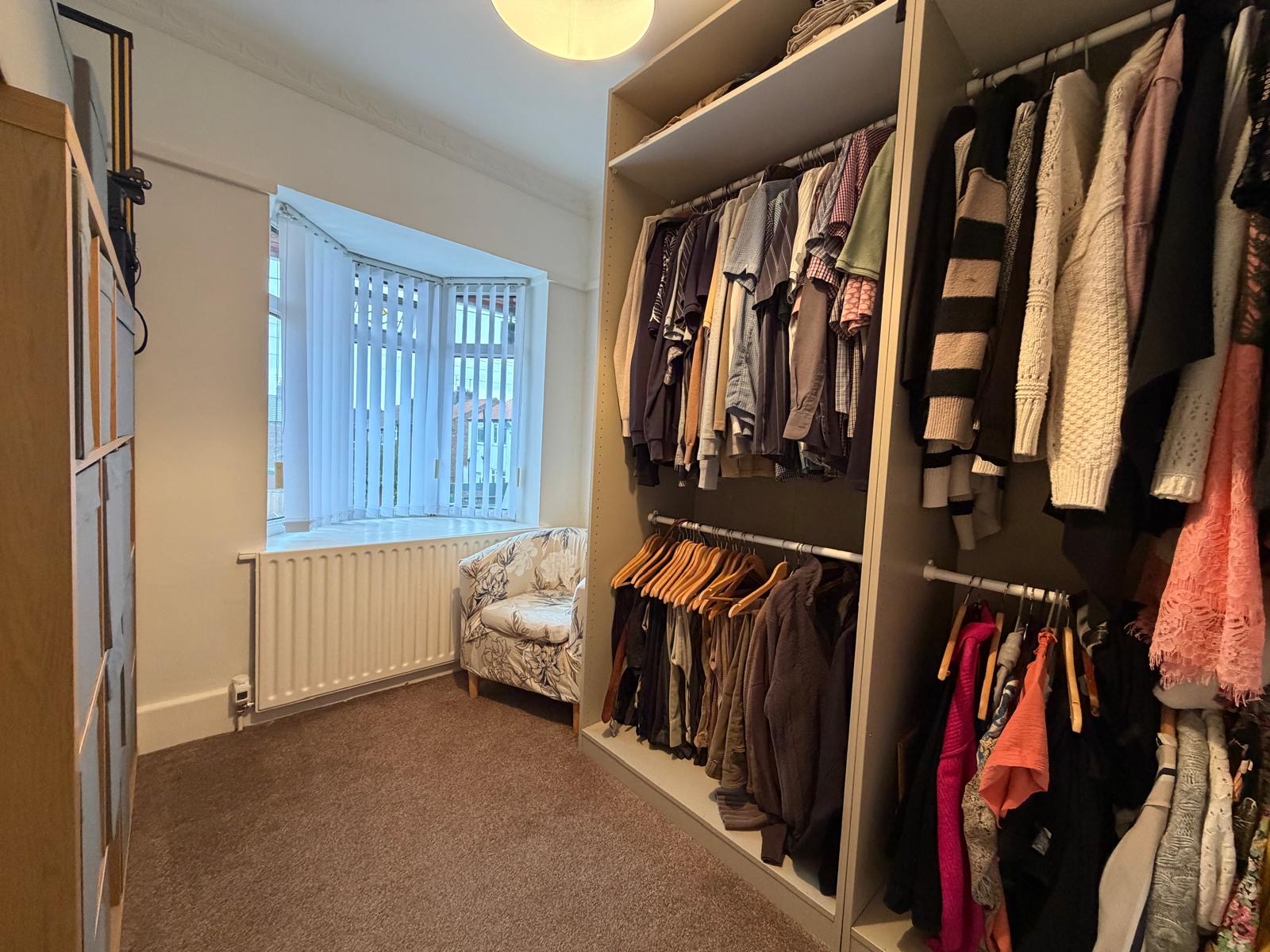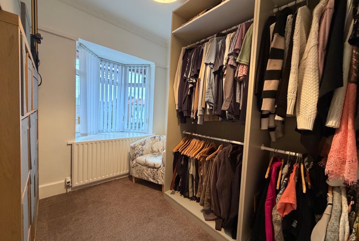 Bedroom Three – 3.60 x 3.29 (11’10” x 10’10”) – Radiator, airing cvpboard with Boch condensing boiler, upvc window to rear aspect.