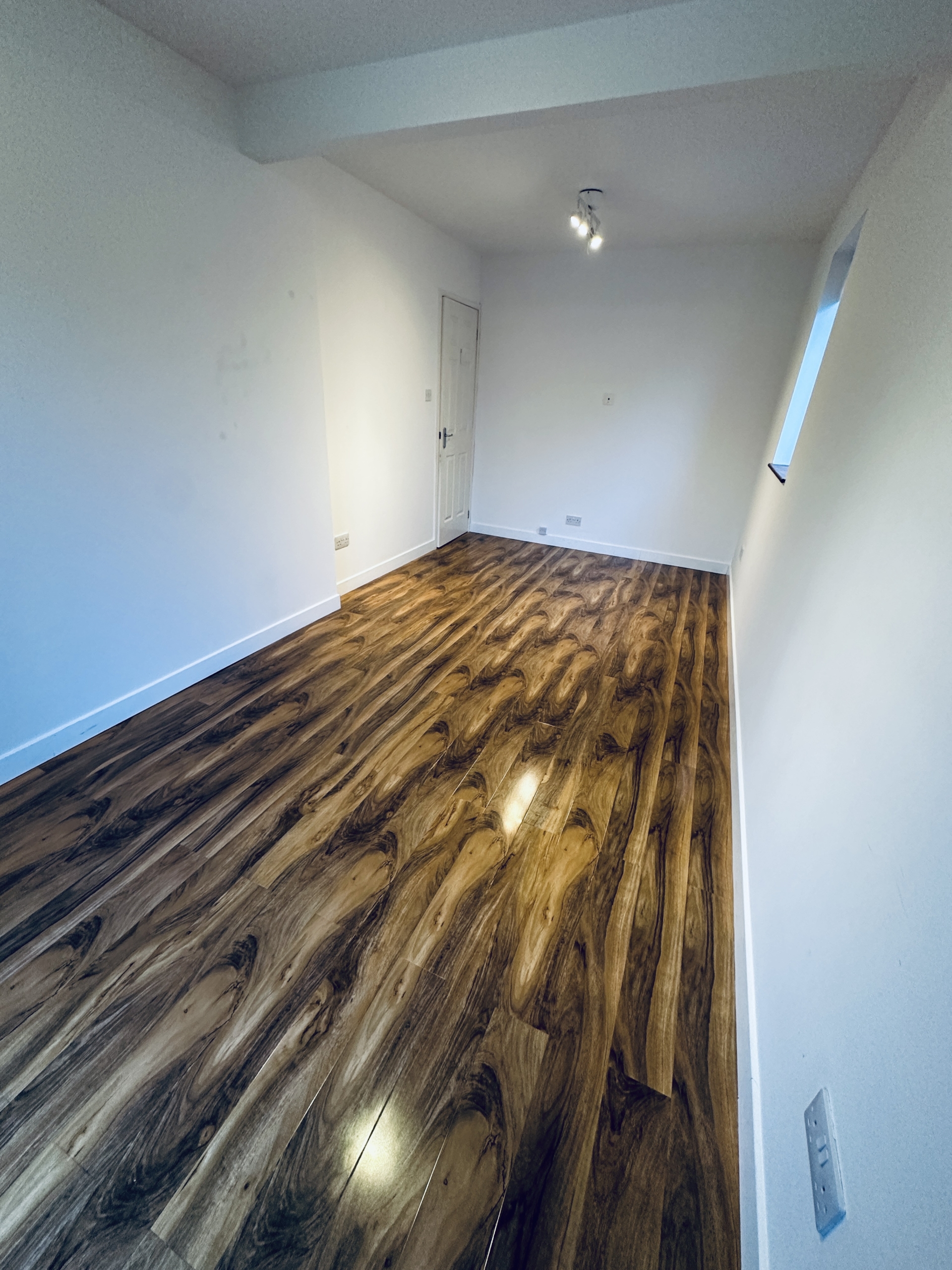 Bedroom 2 has feature walnut flooring and double doors leading to Juliet balcony to front.
