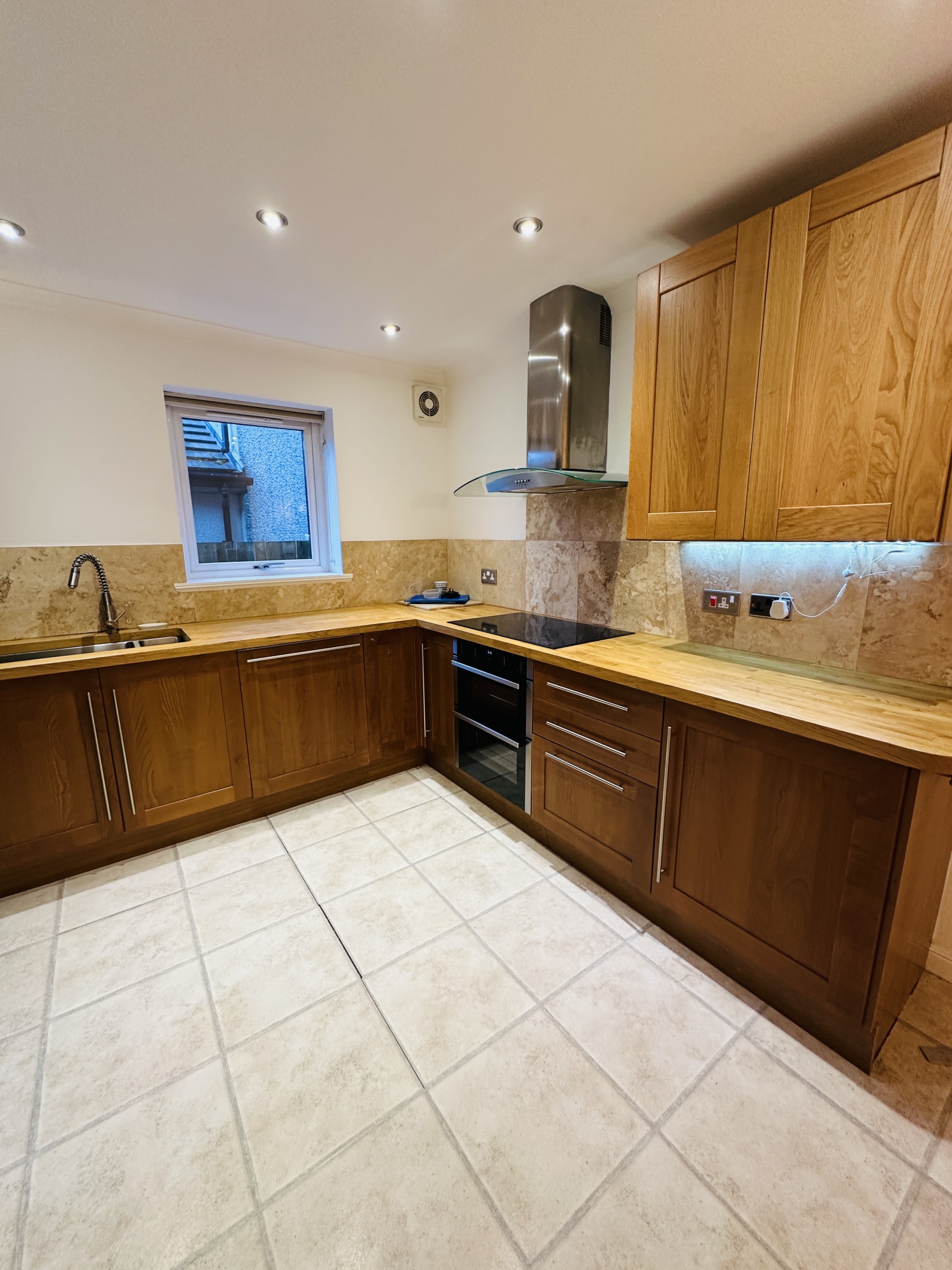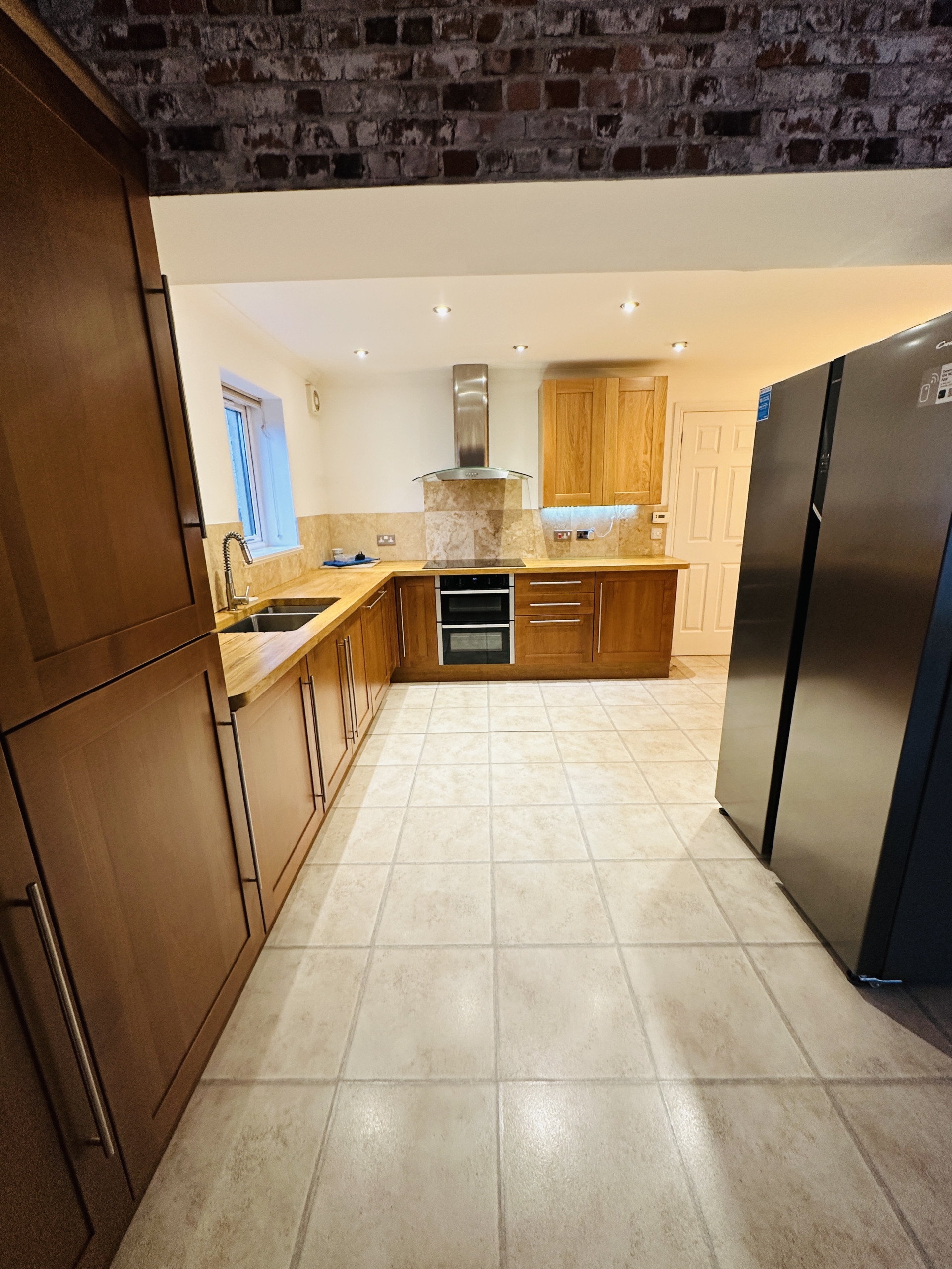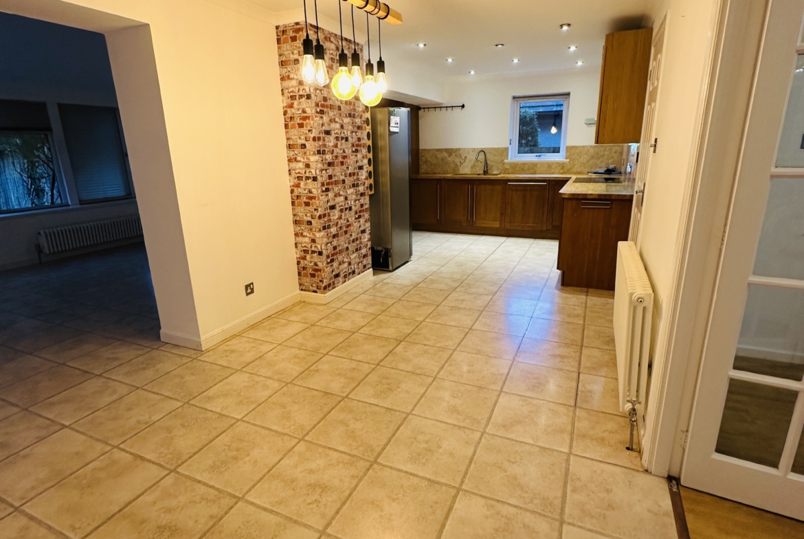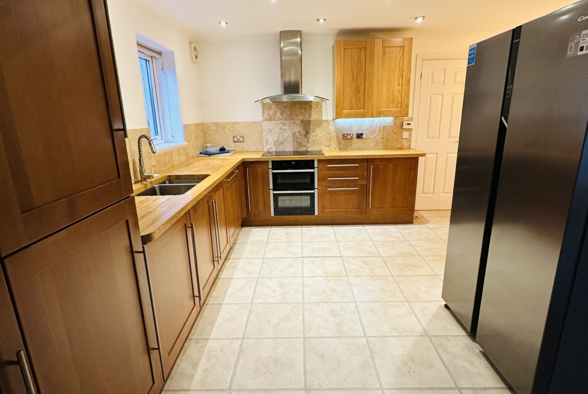 Kitchen has oak worktops and is on open plan with the dining area and semi open plan with the family /garden room. This is a superbly spacious living area which leads through patio doors to the rear garden.