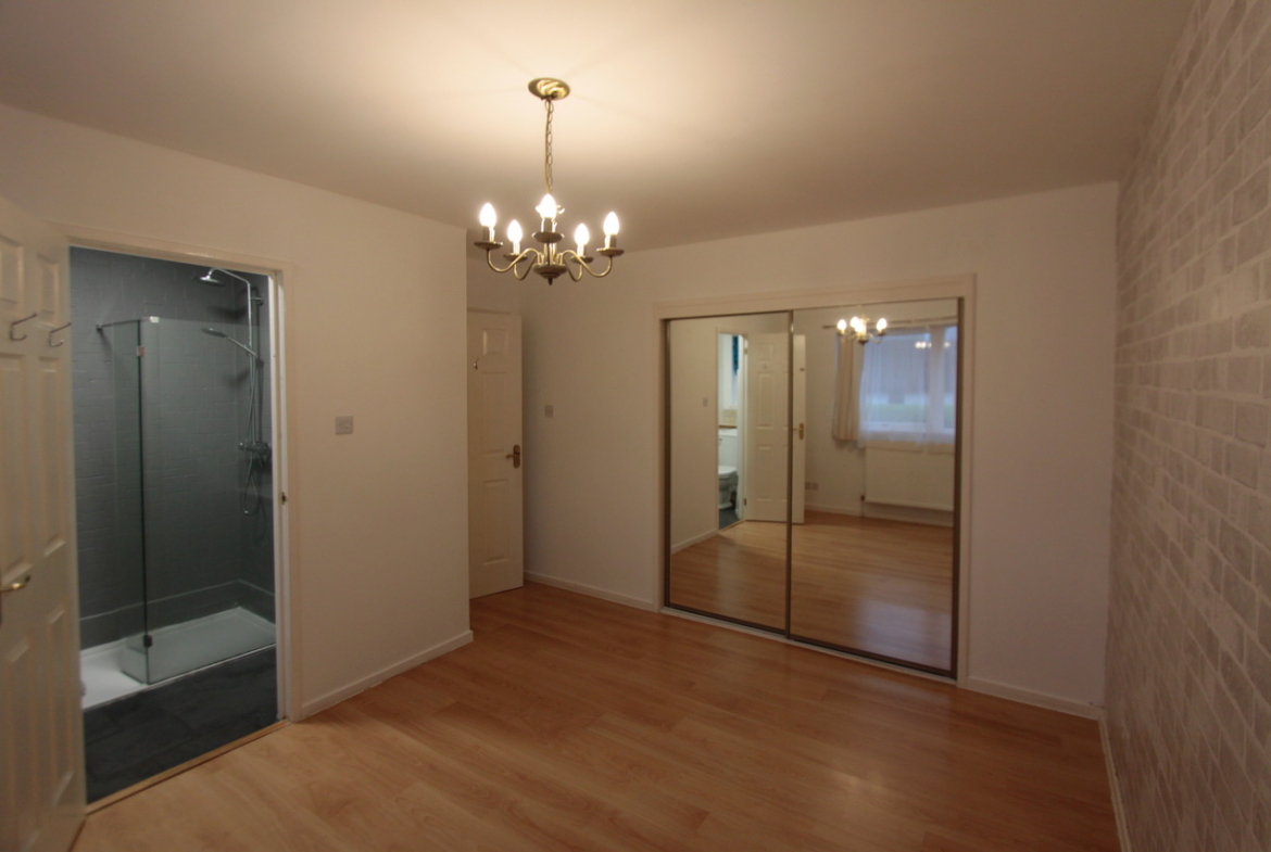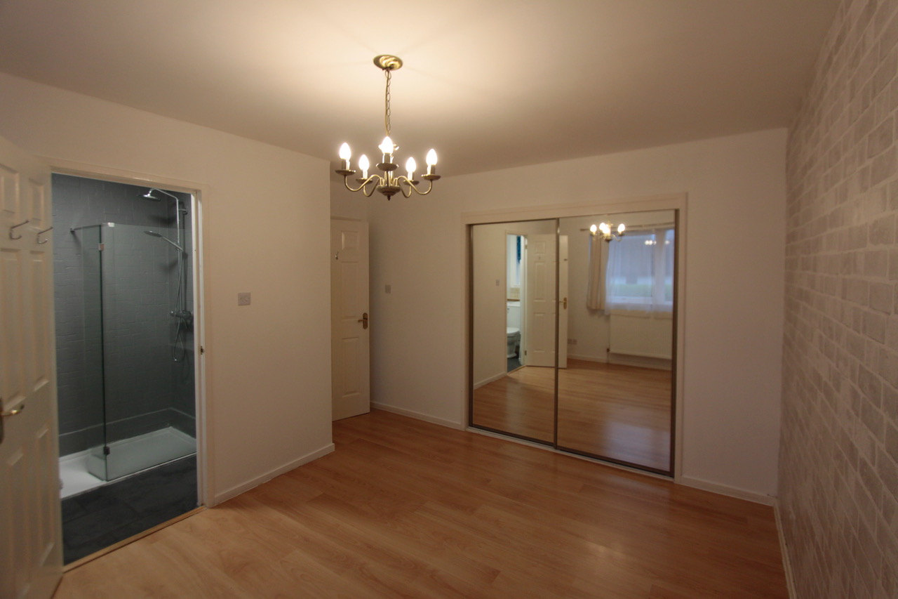 Bedroom 1 overlooking the rear garden has laminate flooring, large wardrobes with mirror doors and ensuite shower room.