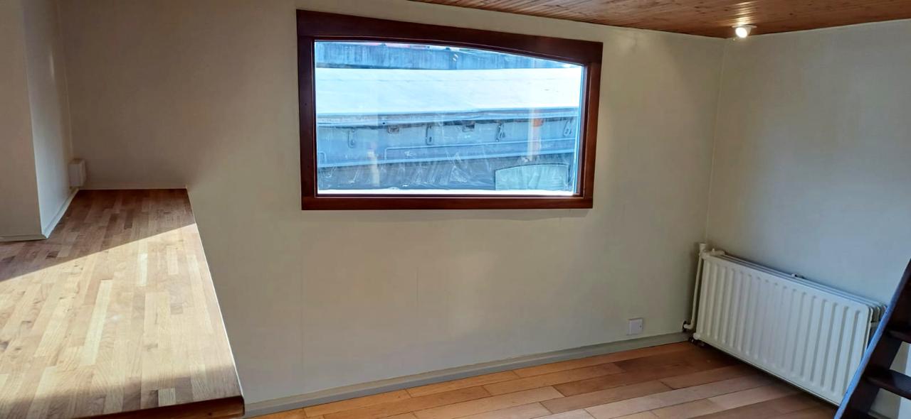 Noorderzon is a converted Belgian Spits. She’s 28.5 metres by 5.05, and is on a secure, residential mooring in East London.