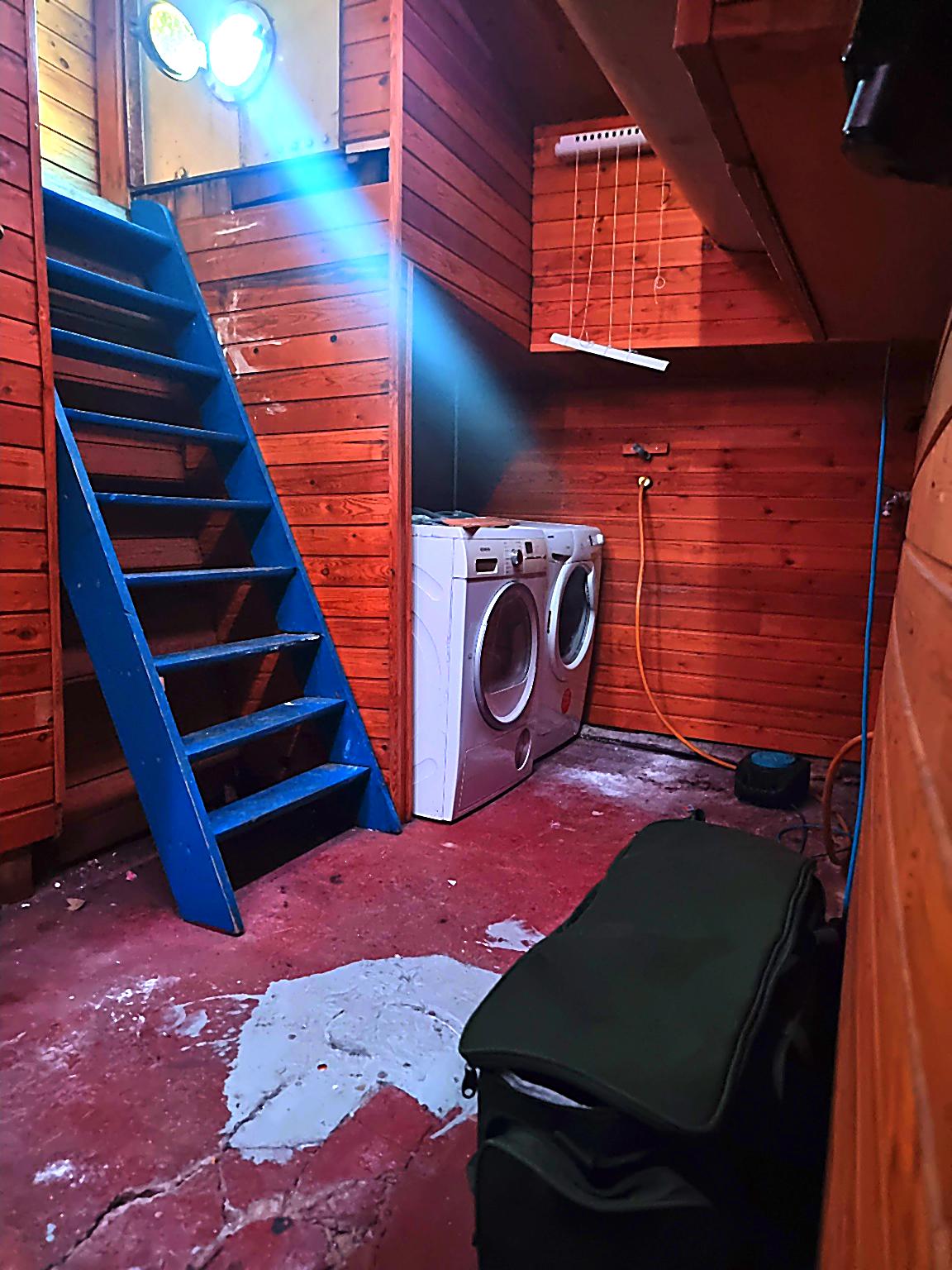 – steps to utility room, with washing machine and tumble drier