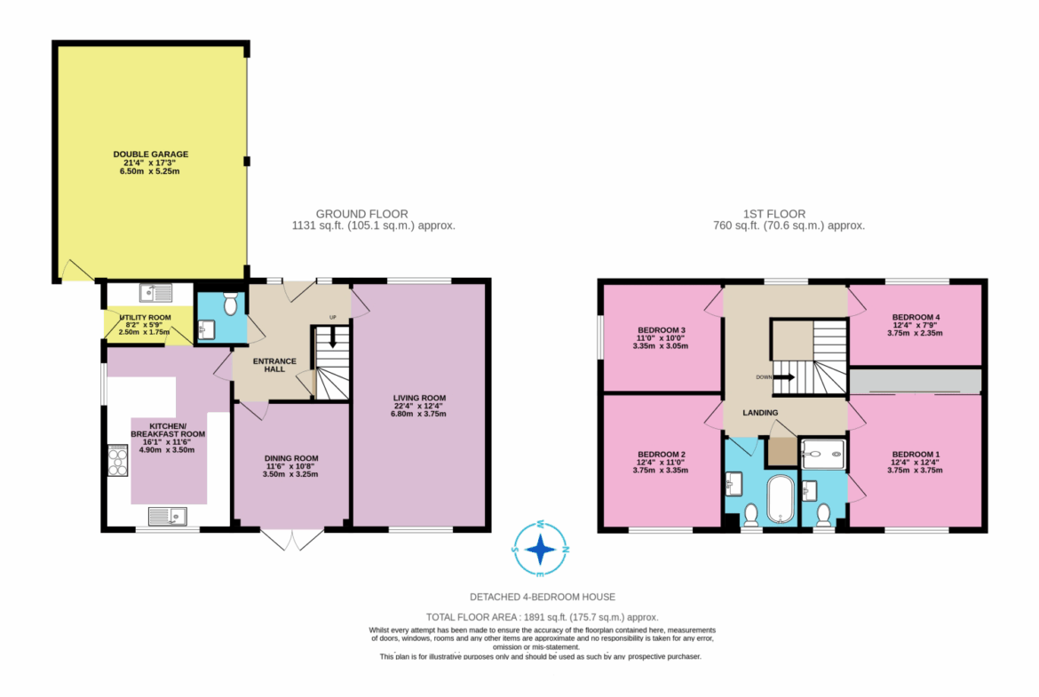 4 Beds, 2 Bathrooms, Cloakroom bathroom, Large Kitchen, Utility, Dining Room, Cloakroom Toilet, Double Garage, Private Low Maintenance Gardens, Detached house, For Sale