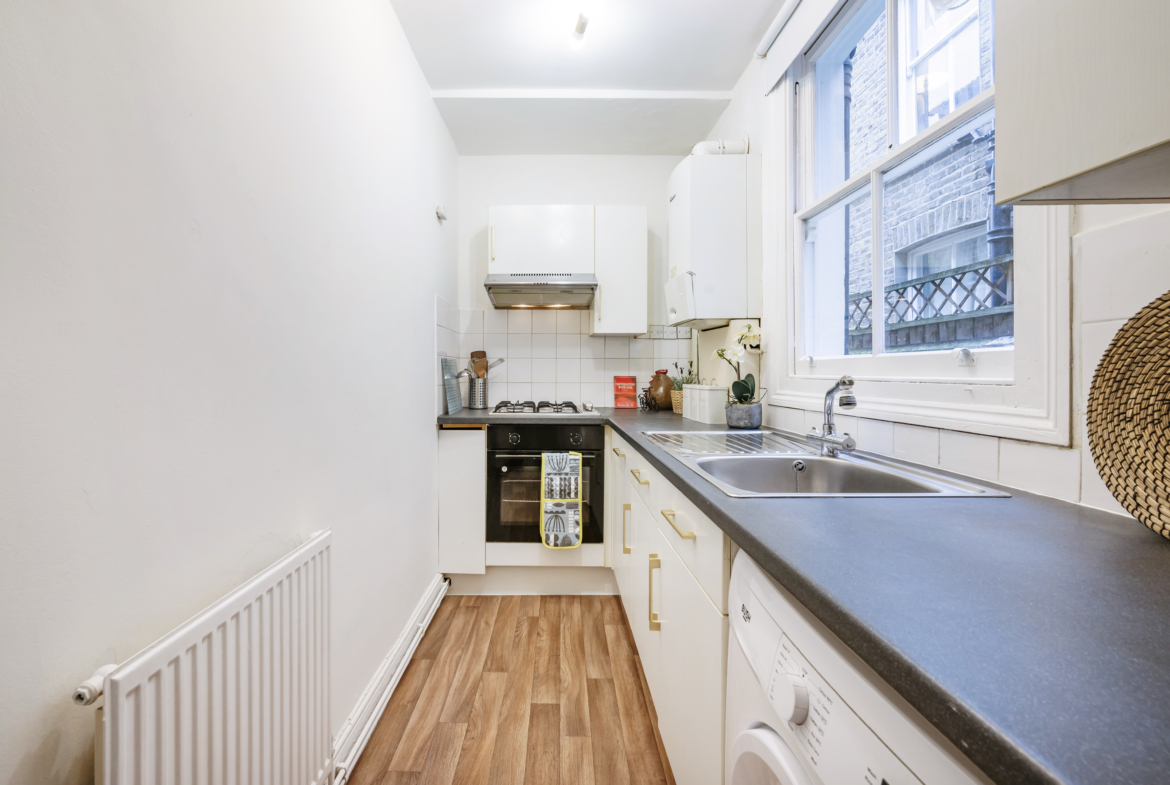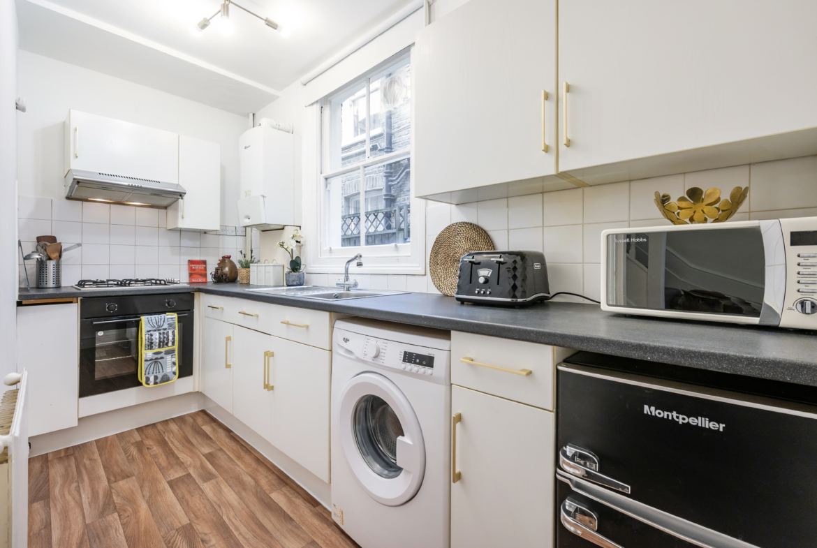 Located on the first floor of a 2 flats building in Glenrosa Street, Fulham (SW6 2QZ), this well-distributed flat offers three comfortable bedrooms, a bright living room, a fully equipped kitchen, and a full bathroom.