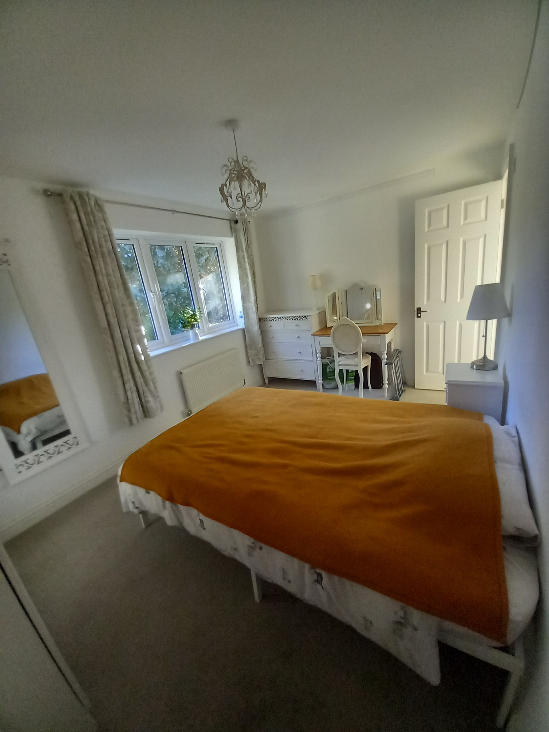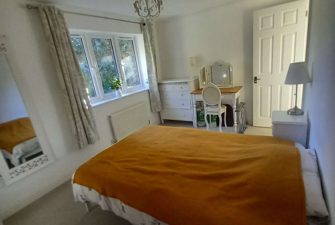 1. Detached well mainted 4 bedroom house in quiet street. Off road parking for two cars. Solar panels. Low energy bills. Secluded mature garden. Ground floor:Fitted kitchen with building appliances. Light hallway. Cloakroom with wc and sink. Spacious lounge with laminated flooring. Stairs to first floor.  First floor.  Bedroom 1; spacious double with ensuite shower room and toilet. Bedroom 2; double bed room. Bedroom 3; single bedroom. Family bathroom with shower over bath and toilet. Second floor. Bedroom 4 spacious and light master bedroom with ensuite shower room and toilet.  4 build in storage cupboards.  Probably in short walking distance a primary school, a secondary  school and bus stop, local shops. Short driving distance, (5 minutes) from a big shopping centre, which a choice of large supermarkets and other stores. 5 minutes drive from motorway junction, 10 minutes drive to train station and airport, 15 minutes drive Southampton town centre. Winchester and sea side within 25 minutes drive.