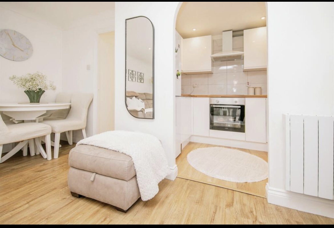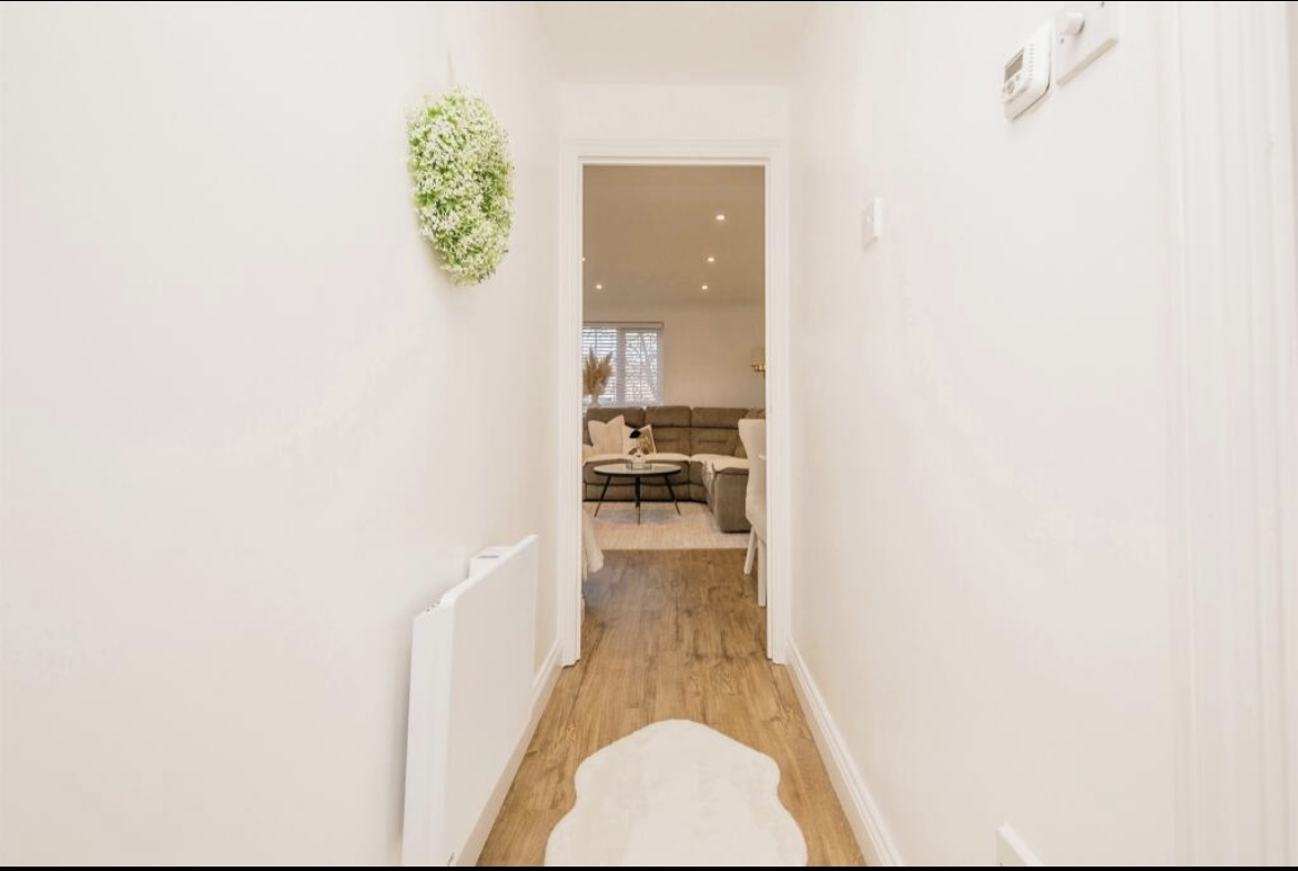 Comprising a spacious lounge, modern fitted kitchen, modern bathroom and two bedrooms. The master is a generous size with a bay window overlooking the garden.