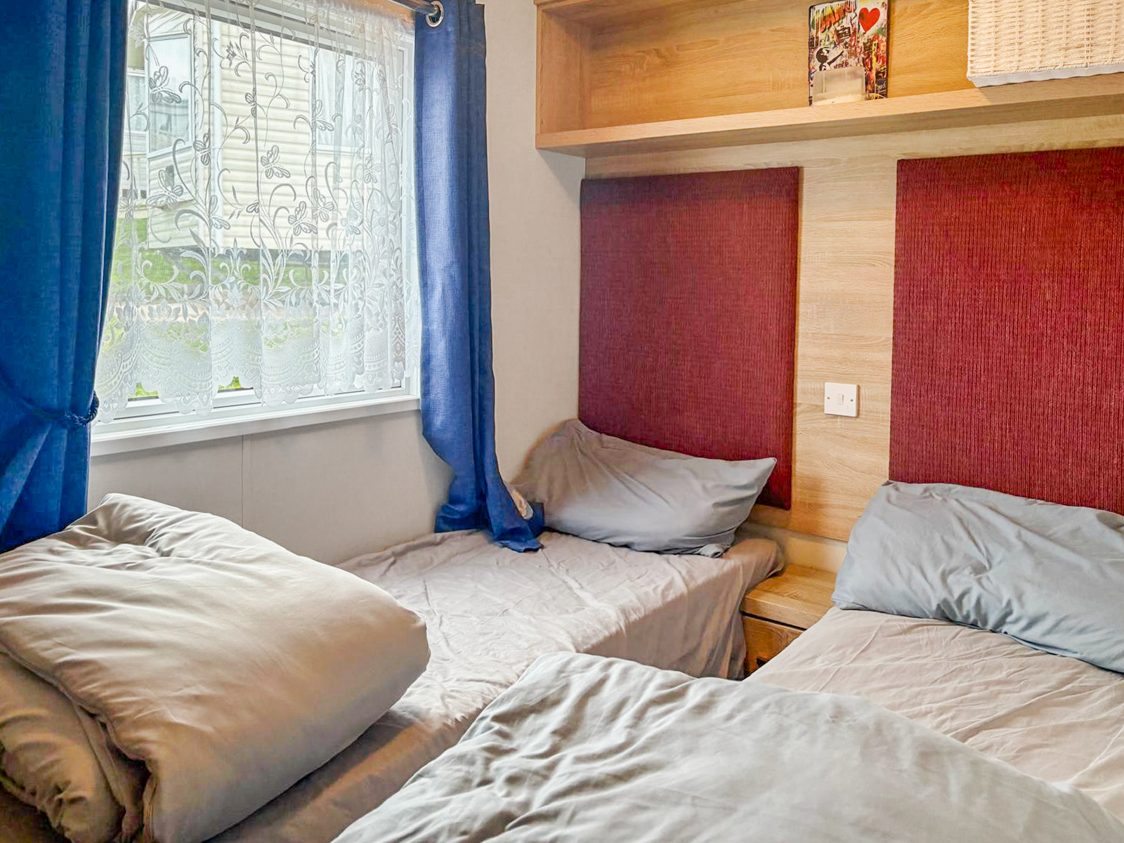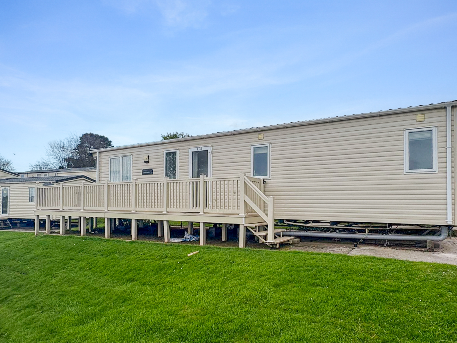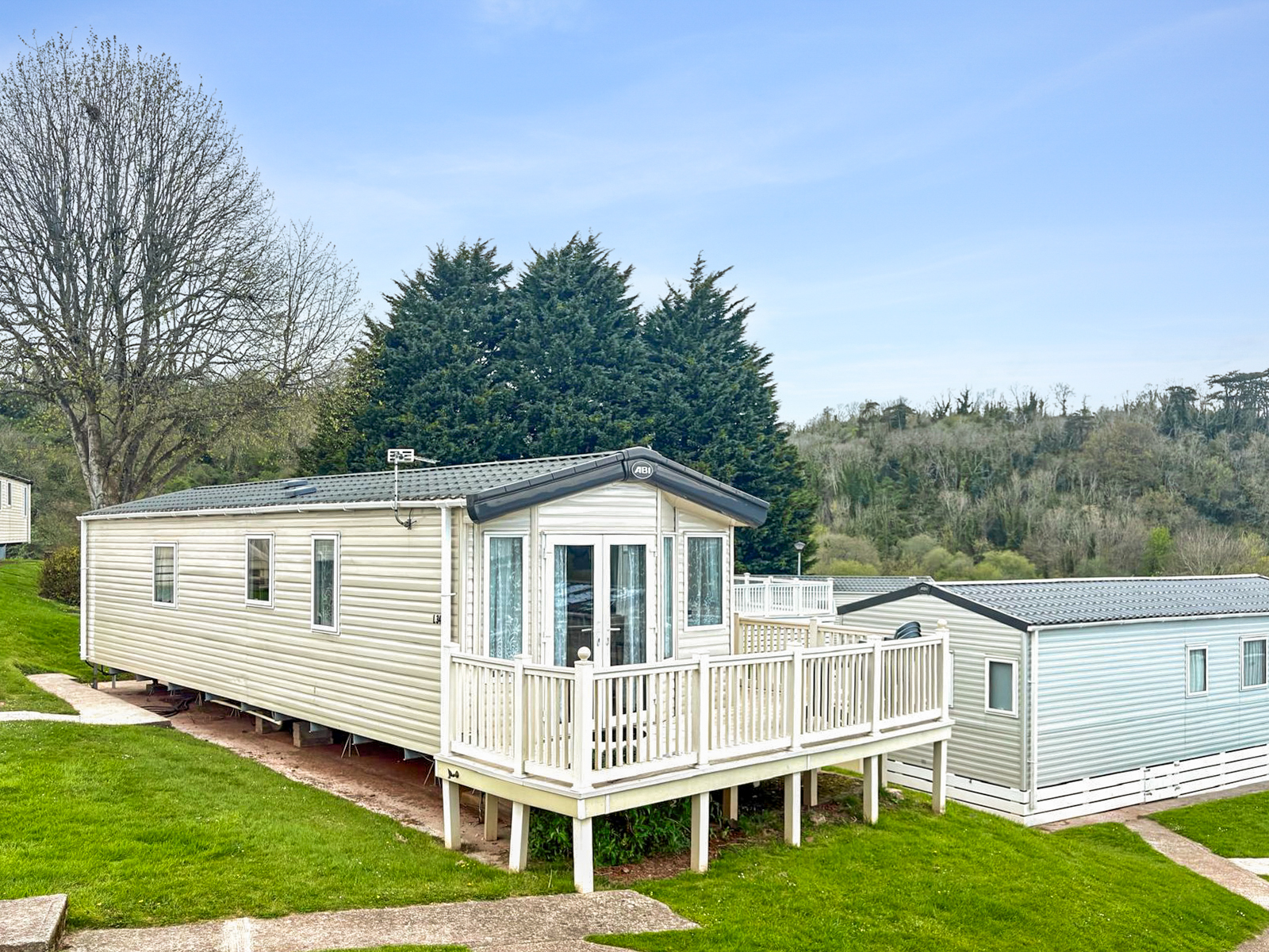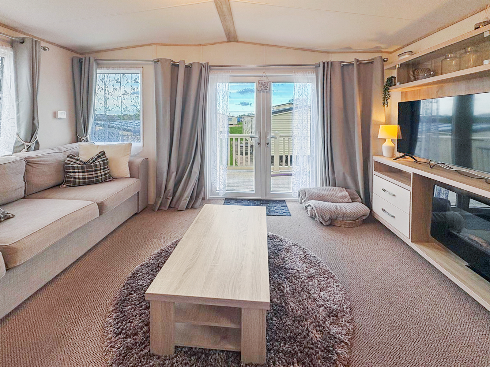 This 2-bedroom ABI Blenheim combines comfort and practicality with its light-filled, open-plan layout and stylish interiors. The living area includes a large wraparound sofa (with sofa bed), built-in electric fire and freestanding dining furniture. The kitchen is well-equipped with integrated appliances and plenty of storage space — ideal for both short stays and longer visits.