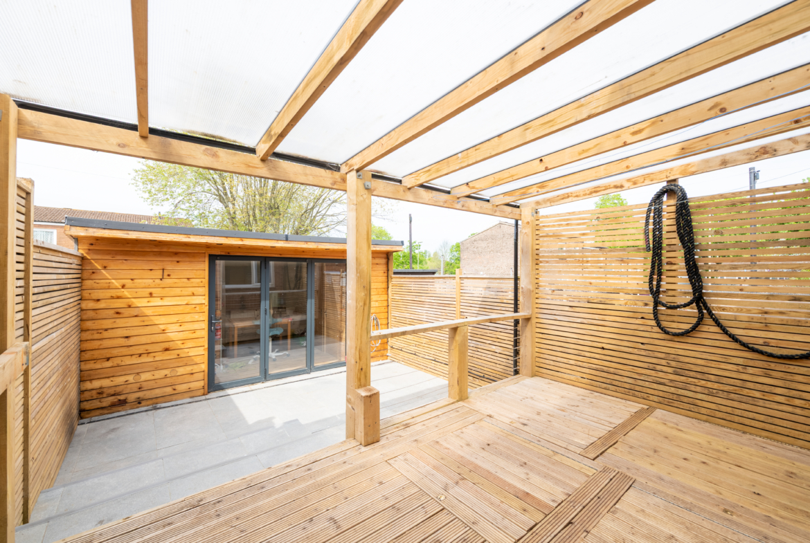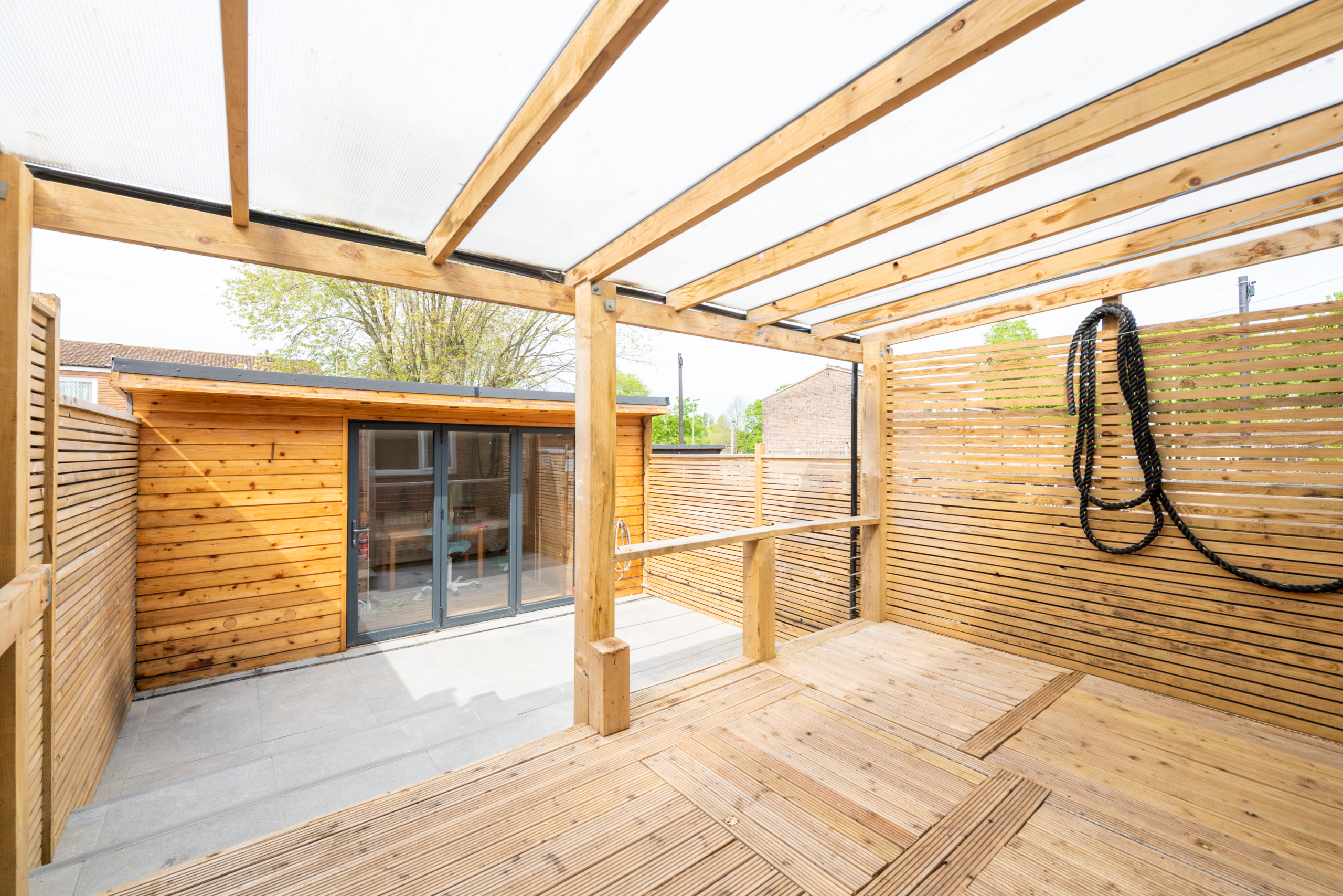 A standout feature is the fully powered garden office/mancave—a versatile space ideal for remote working, hobbies, or simply relaxing in privacy.