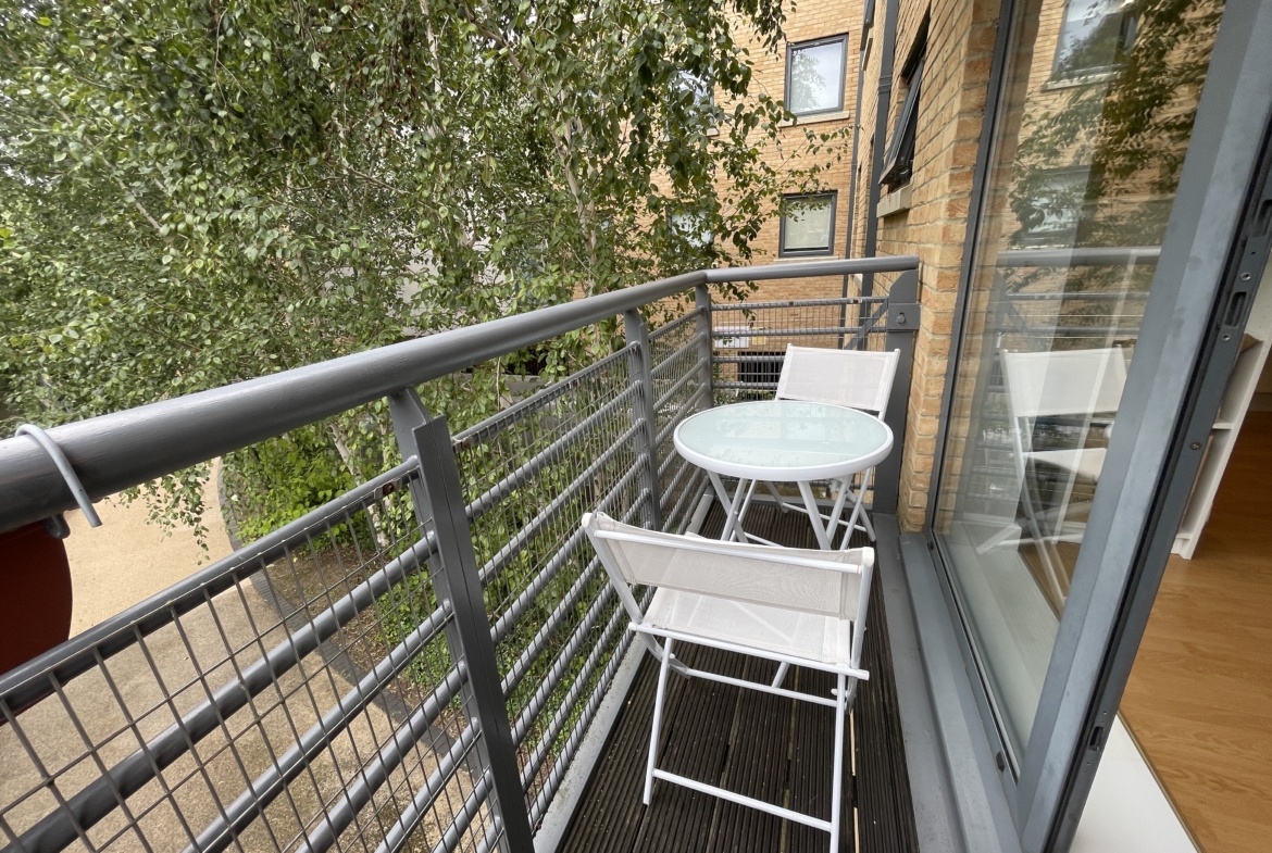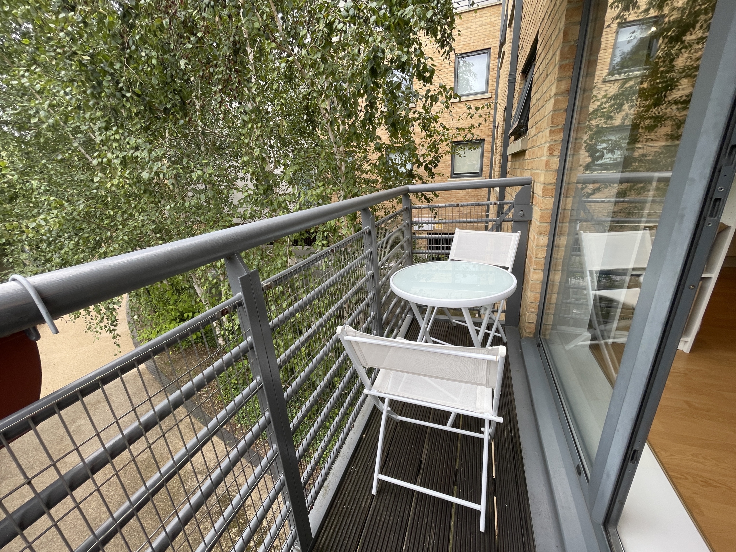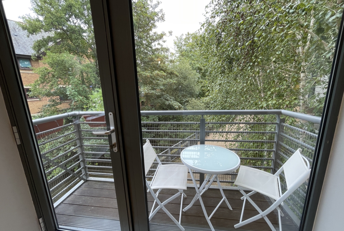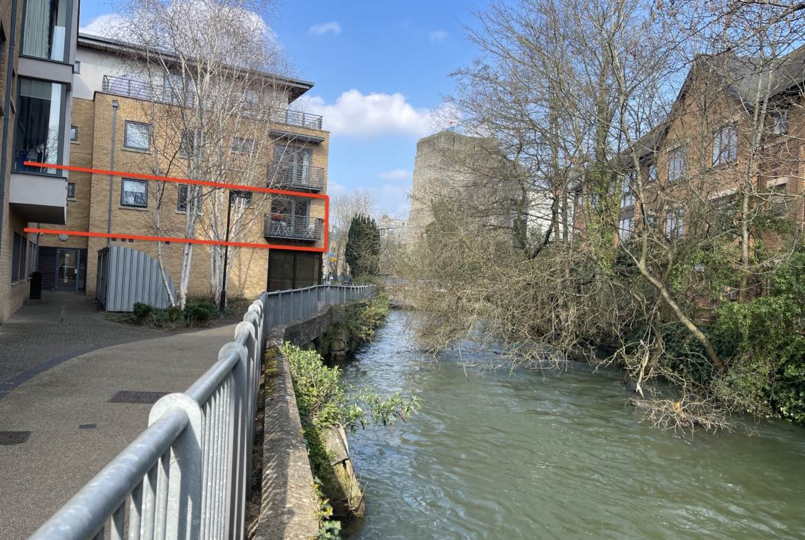Corner 1st floor flat with direct water views off the stream. Spacious Balcony with water views.