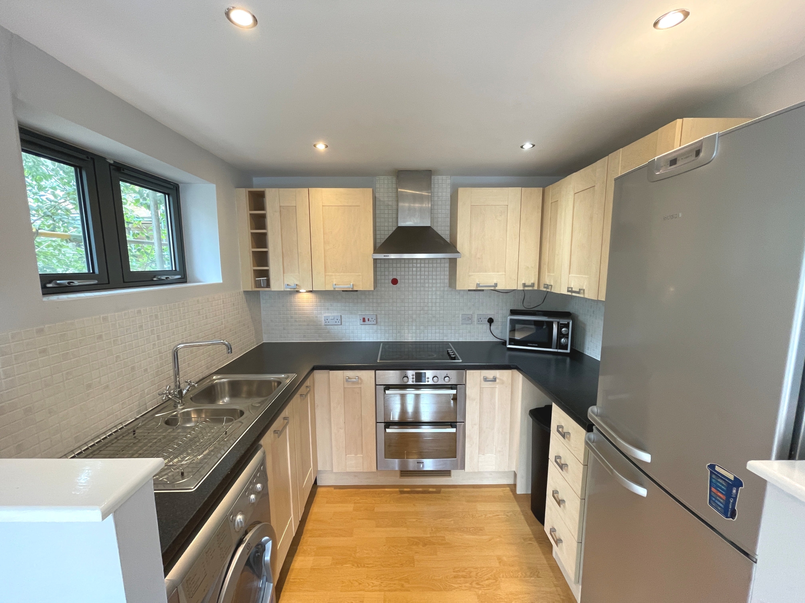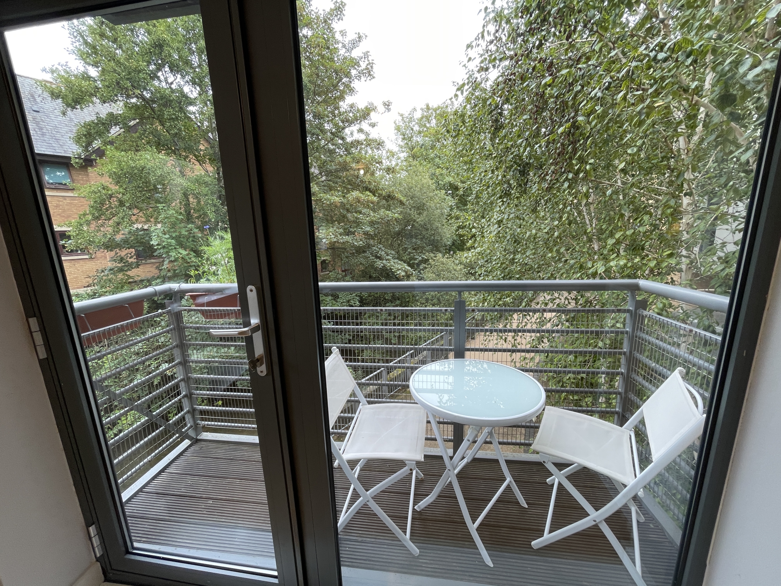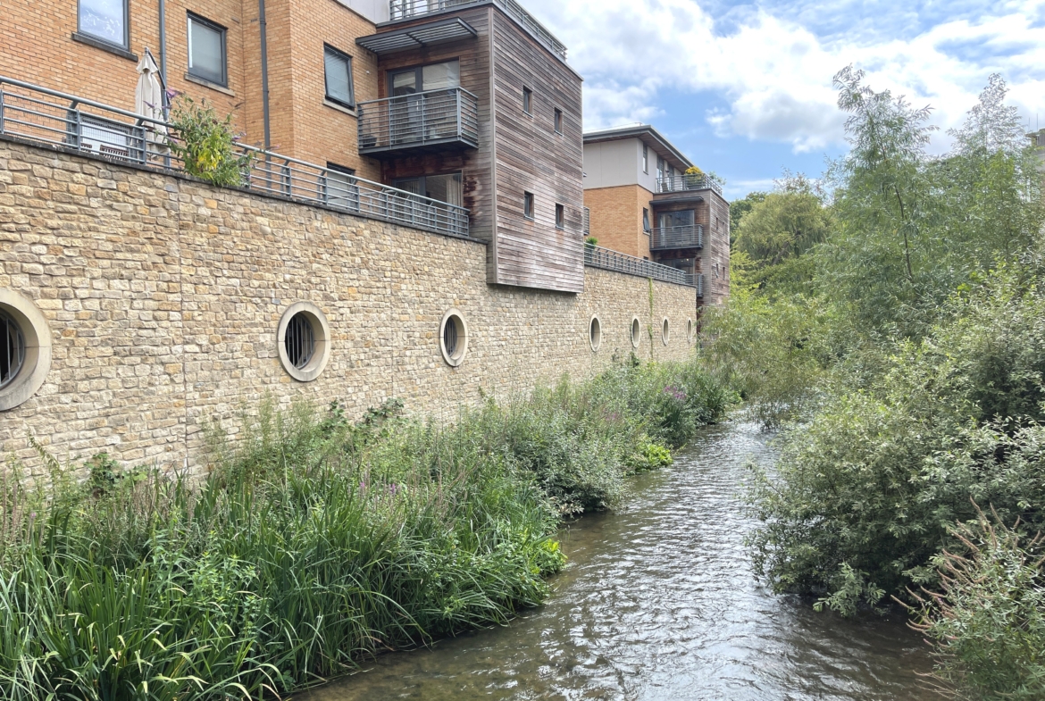 Corner 1st floor flat with direct water views off the stream. Spacious Balcony with water views.
